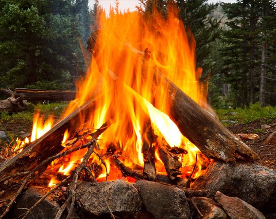 A campfire is a fire at a campsite that provides light and warmth, and heat for cooking. It can also serve as a beacon, and an insect and predator deterrent. Established campgrounds often provide a stone or steel fire ring for safety. Campfires are a popular feature of camping.